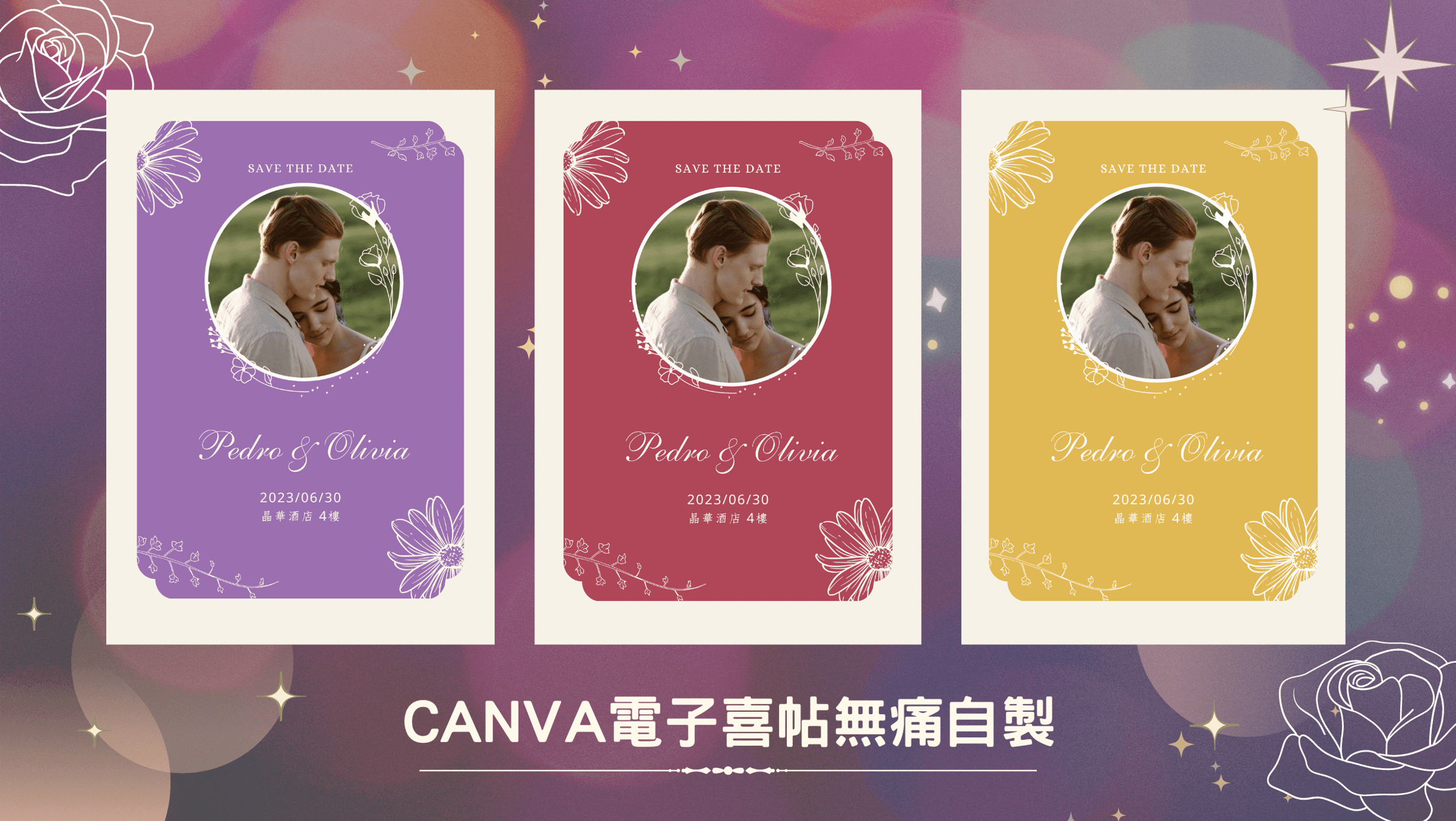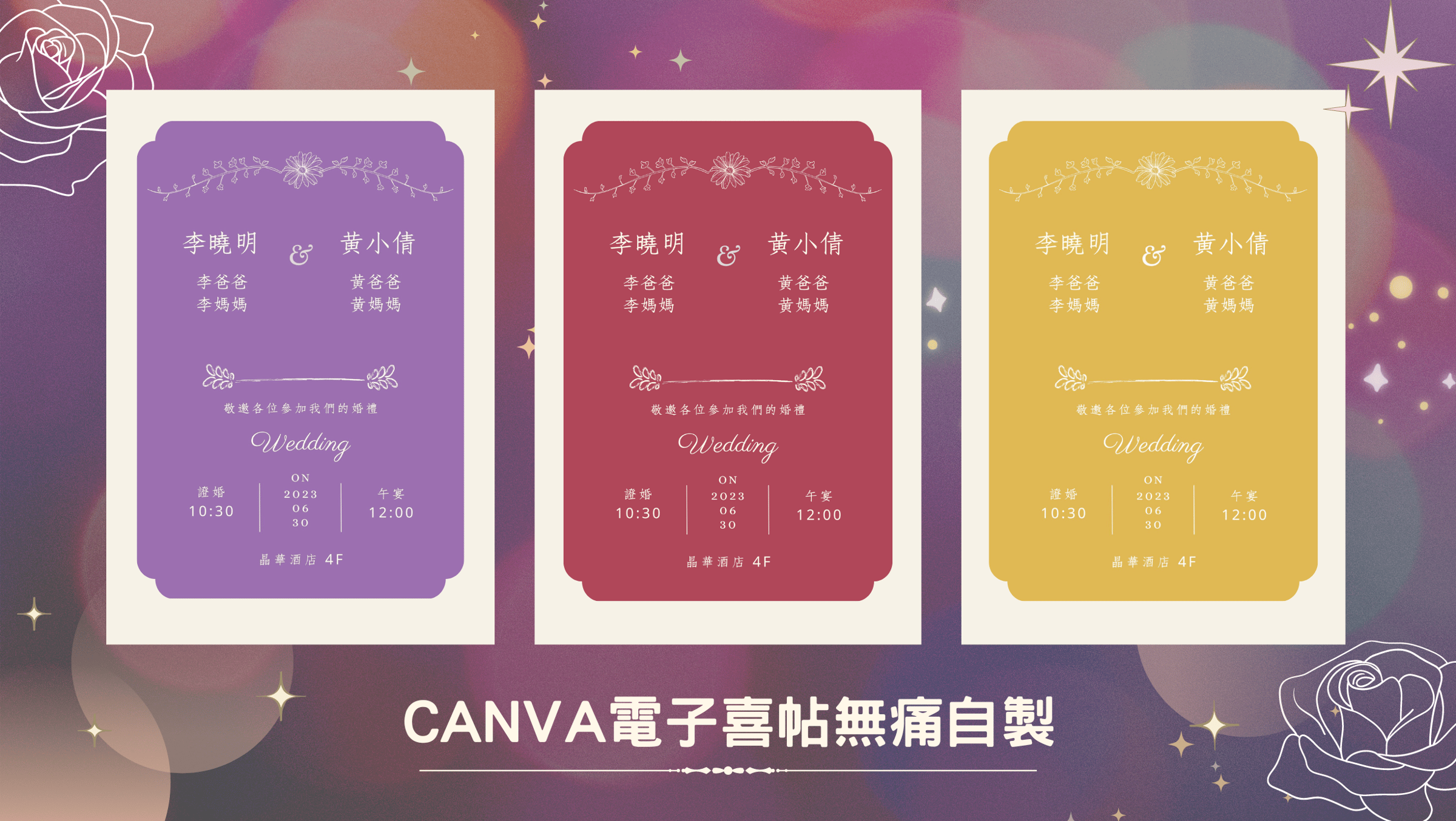 我前陣子學習CANVA,做了三種電子喜帖模板,你可以在以下的懶人包中得到: